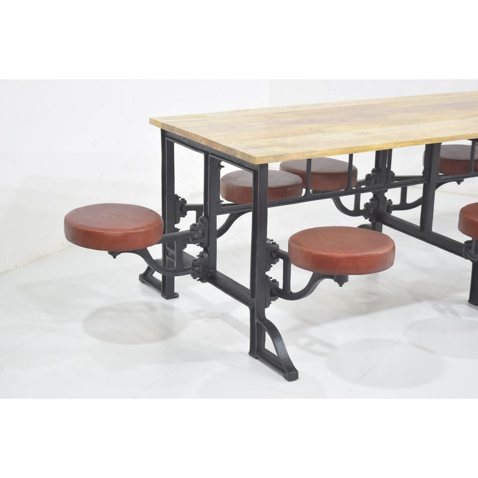 Vintage Cast Iron Dining Table Swing Leather Seat Foldable Outdoor Banquets Furniture for Homes Canteen Cafeteria Durable Metal