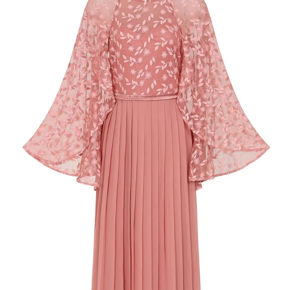 Vintage Casual Long Maxi Dress Women Boat Neck Lace-up Cape Sleeve Solid A-Line Silhouette Chiffon Fabric Natural Maternity 100%