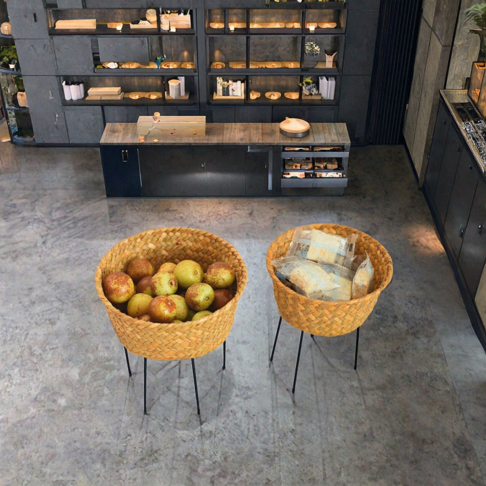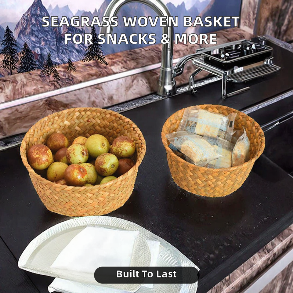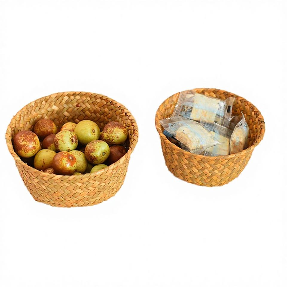 Vintage Circle Seagrass Woven Multi-Purpose Small Storage Basket for Home Use