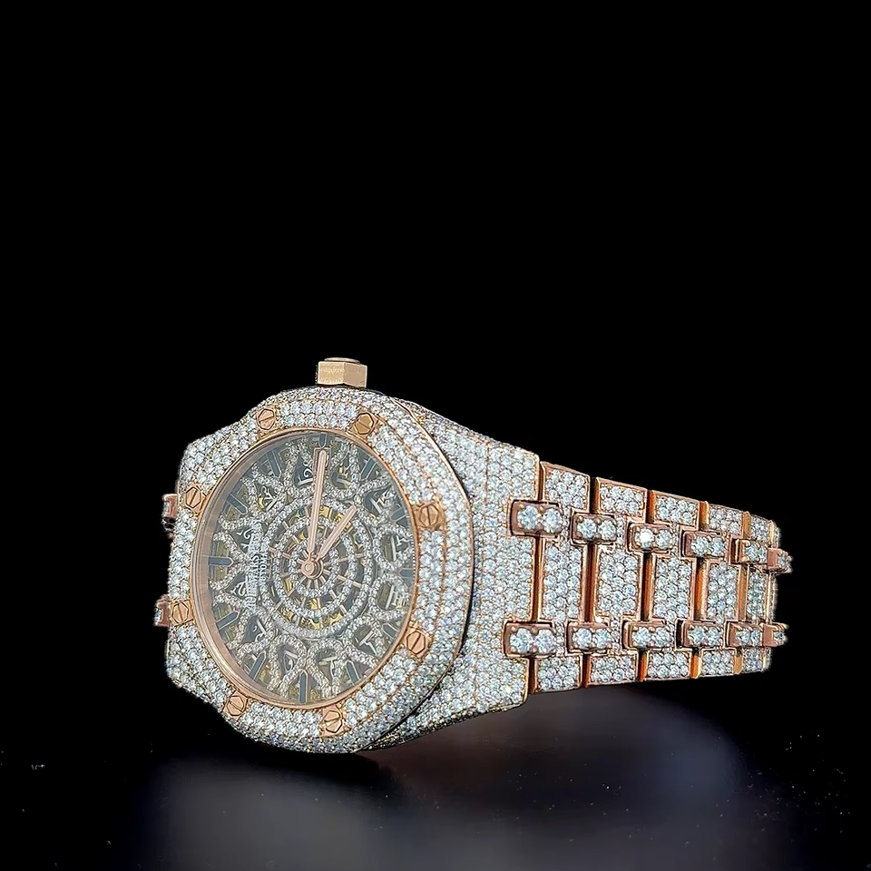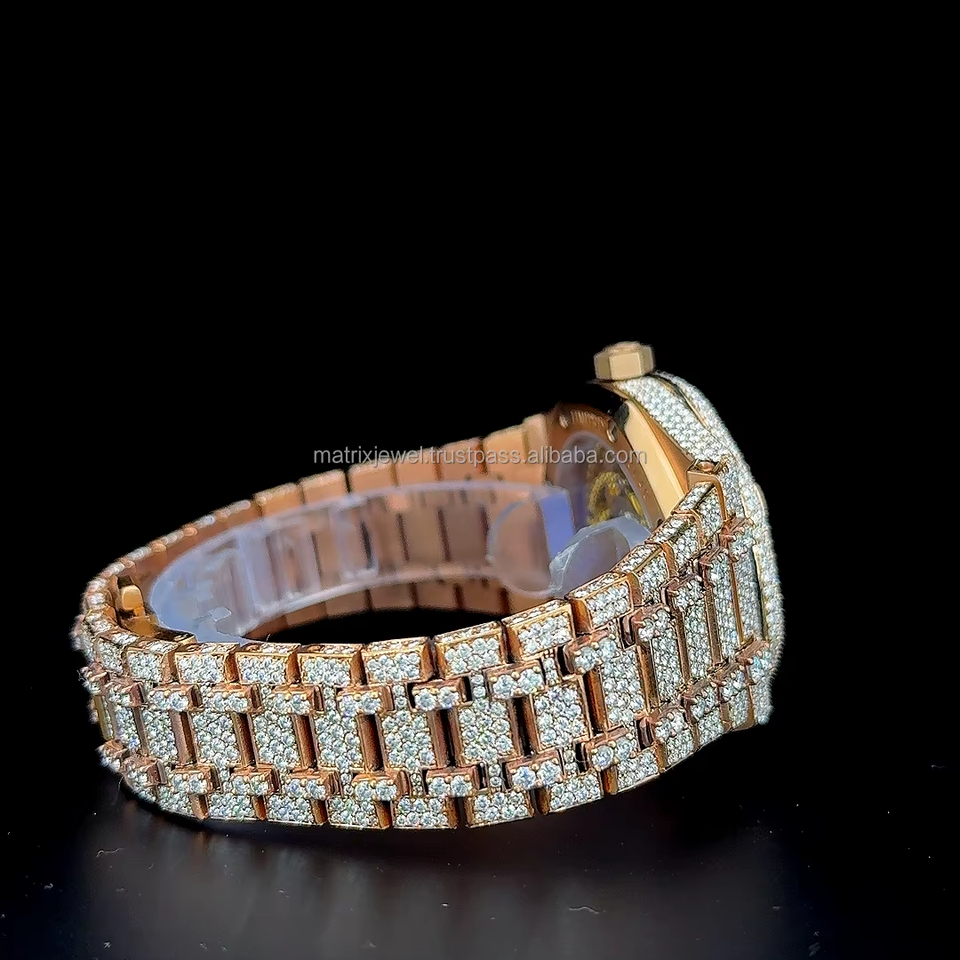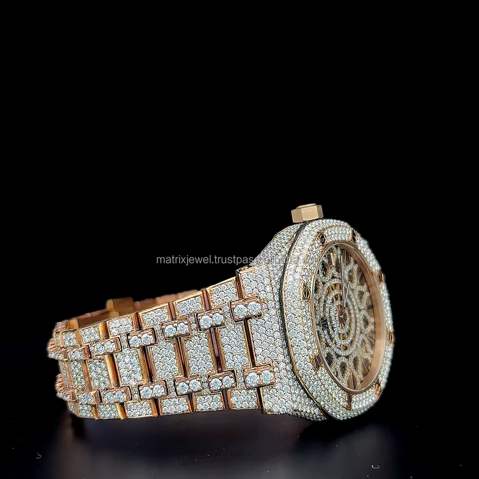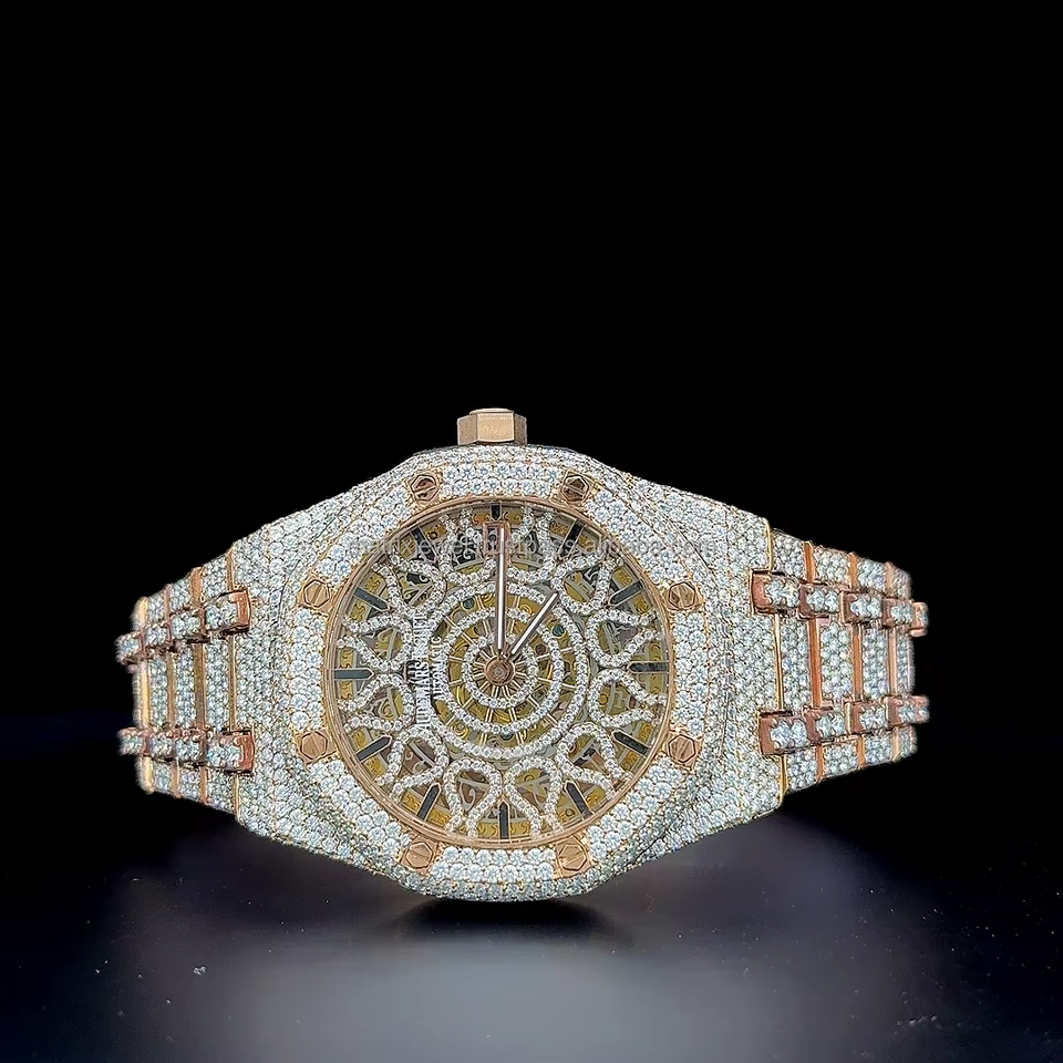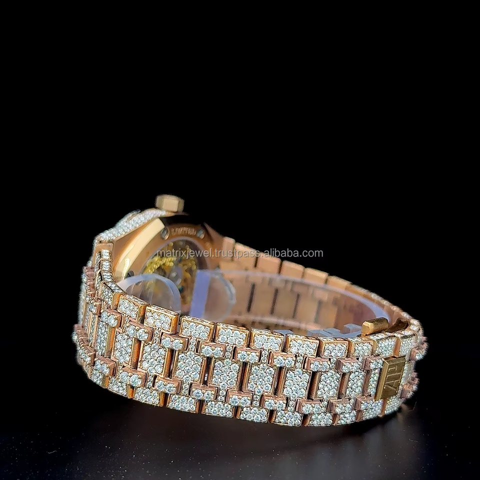 Vintage Classic Automatic Skeleton VVS 1 Moissanite Stainless Steel Watch full Iced out Moissanite watch Quartz Movement