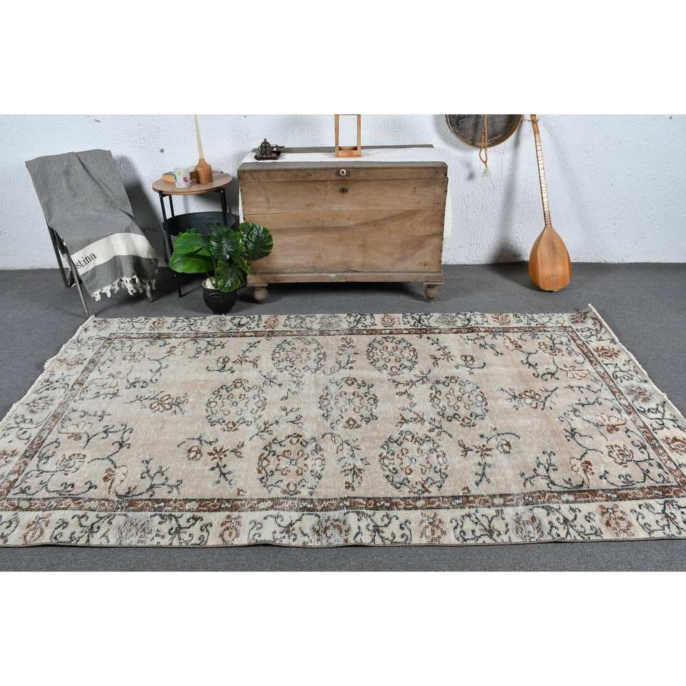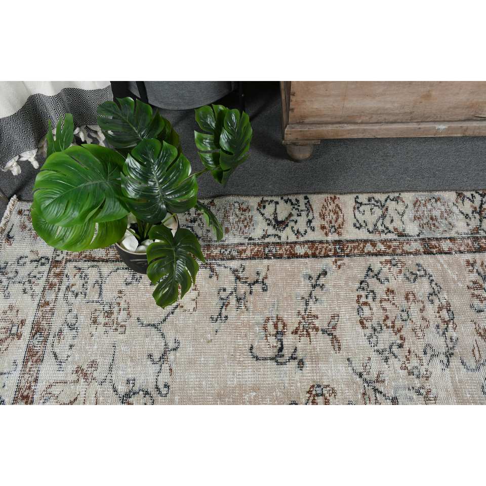 Vintage Classic Tabriz Style Turkish Rug 4ft X 8.7ft Handmade Wool Beige Brown Patchwork Pattern Latex Backing for Teen Living