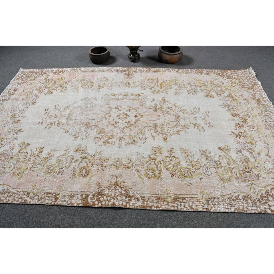 Vintage Classic Tabriz Style Turkish Rug 5.5 X 8.9ft Handmade Beige Brown Wool Patchwork Pattern Latex for Living Bedroom