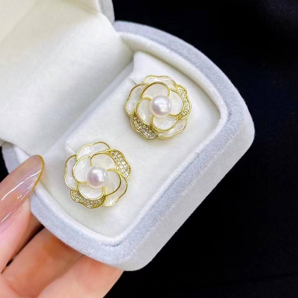 Vintage Classic Three-Dimensional Camellia Shaped Freshwater Pearl Earrings Pure Silver From Zhuji Jewelry