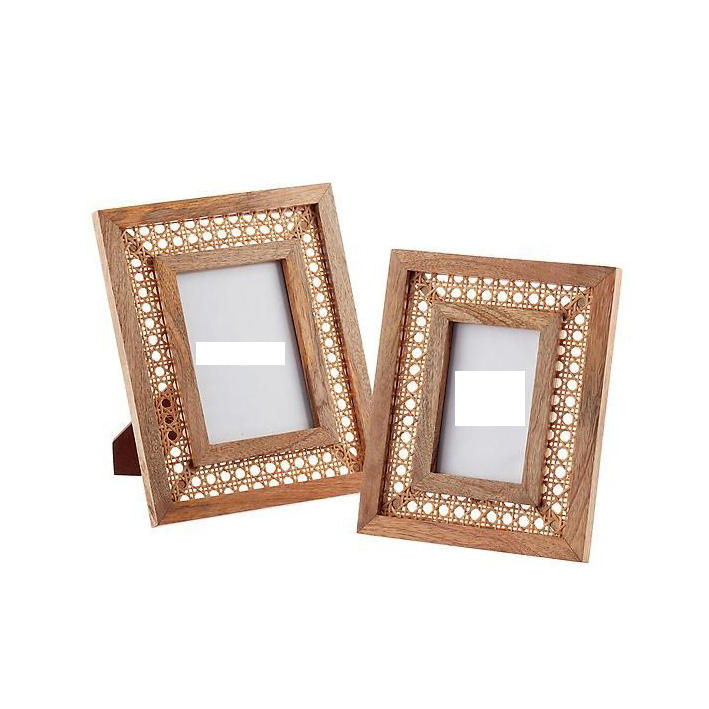 Vintage Coastal Grandeur Artisanal Wooden & Handwoven Rattan Frame Collection for a Naturally Elegant & Breezy Aesthetic