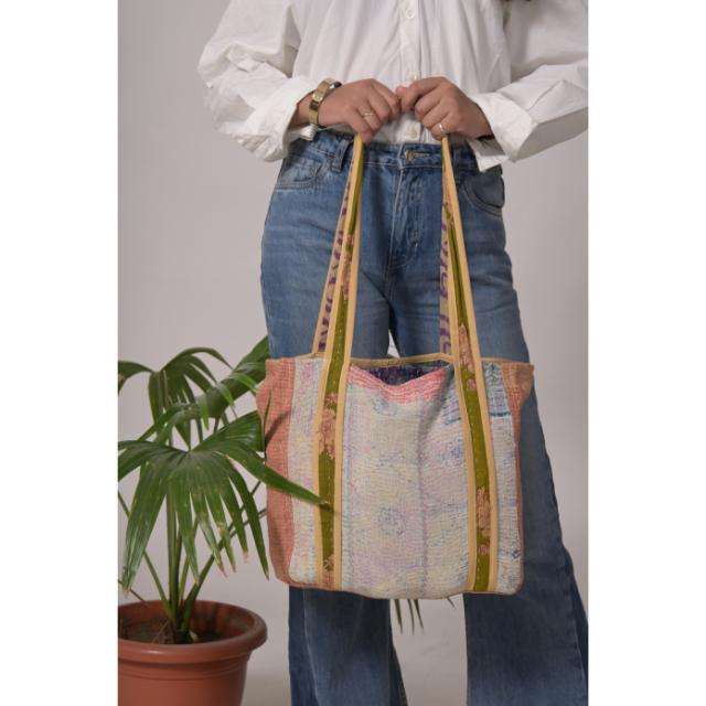 Vintage Cotton Kantha Tote Handmade Boho Bag for Women, Grocery, Market, or Beach Use