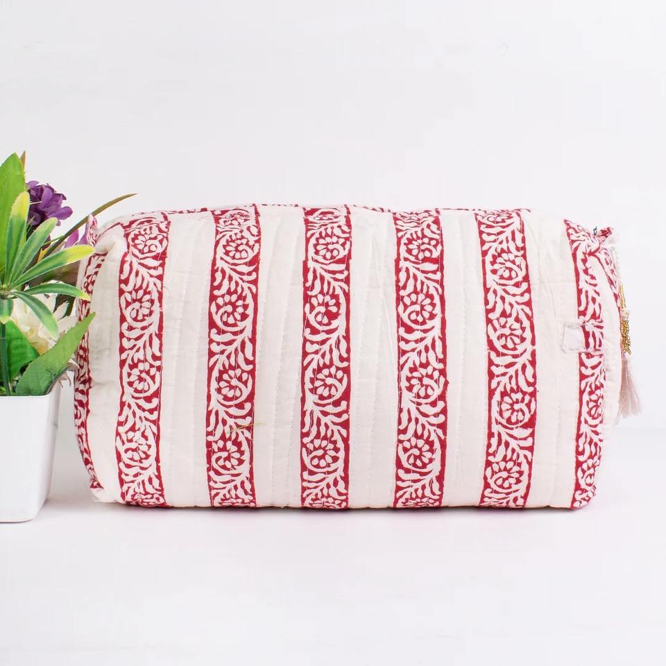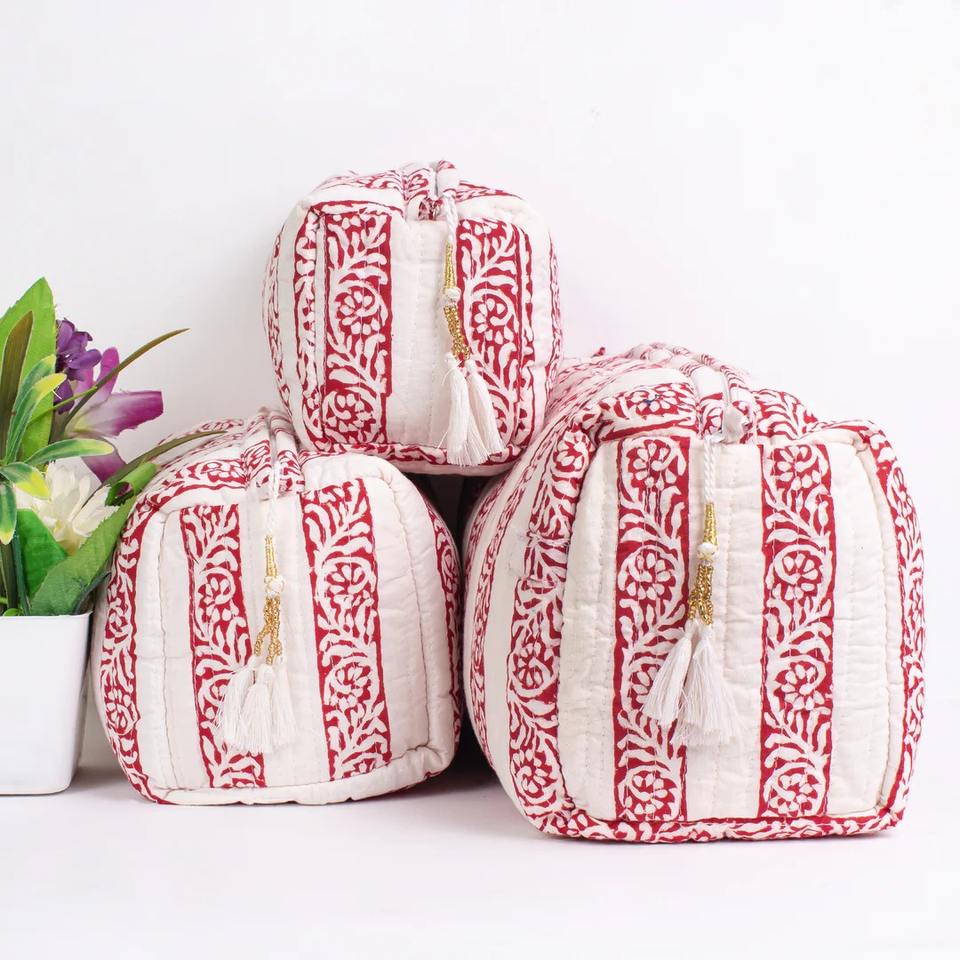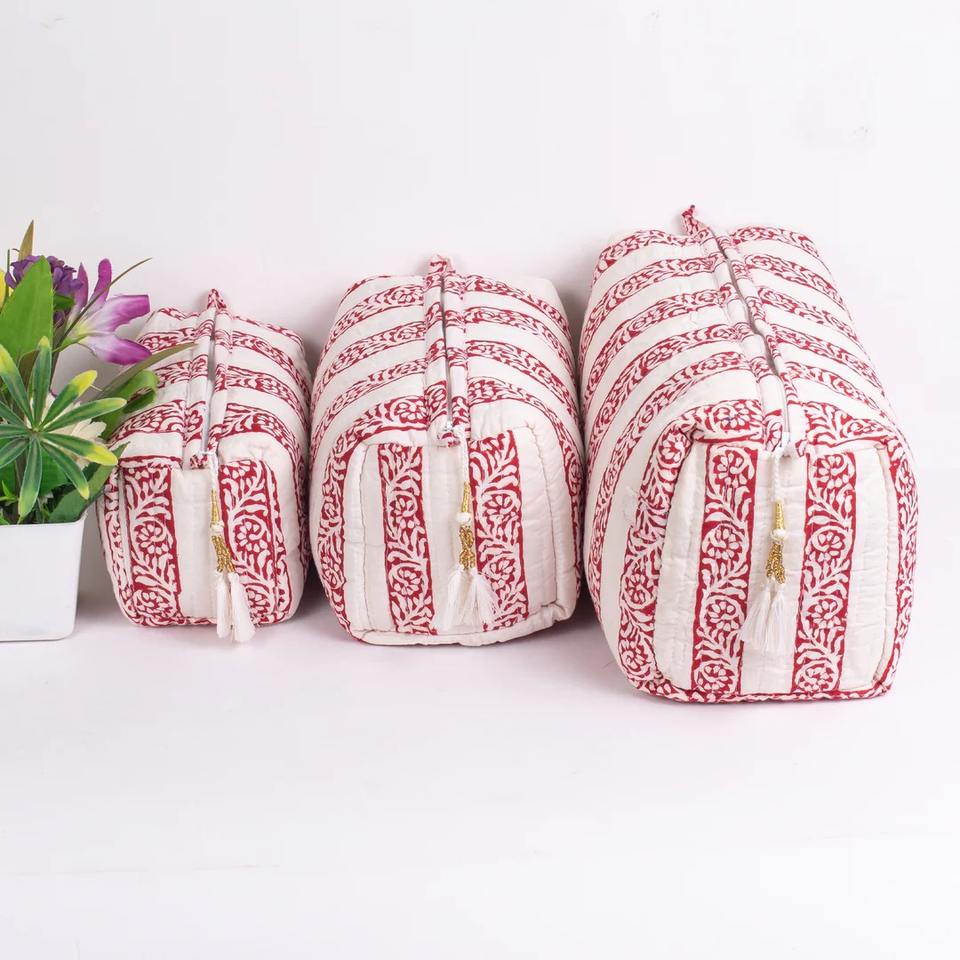 Vintage Cotton Print Zipper Closure Water Resistant Eco-Friendly Durable Small/Medium/Large Capacity Cosmetic Bag Makeup Storage
