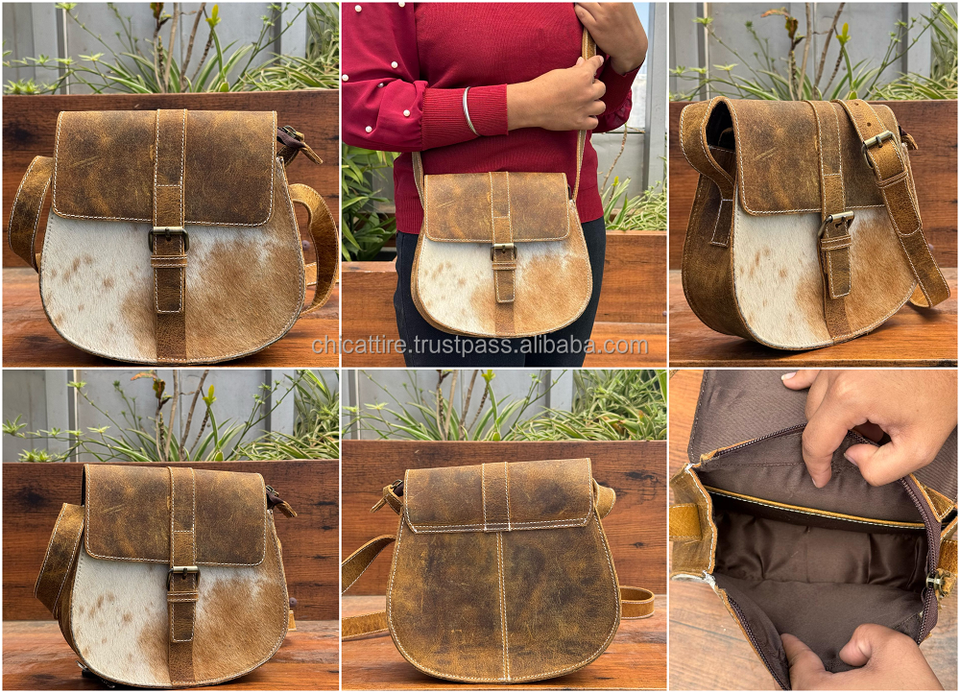 Vintage Cowhide Leather Crossbody Bag for Women Handmade Adjustable Strap Genuine Leather Shoulder Bag Western Style Saddle Bags