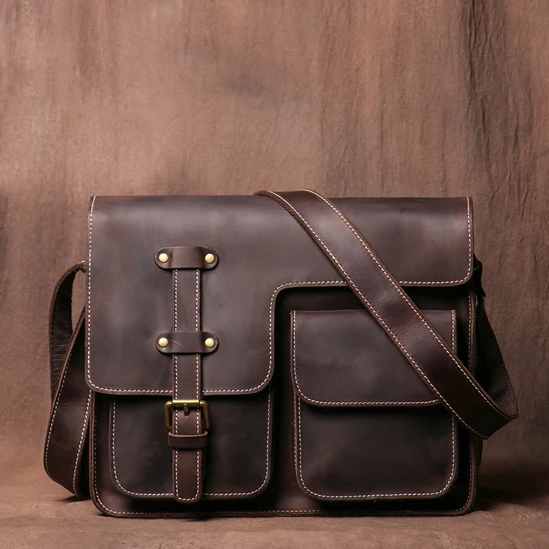 Vintage Cowhide Men Handbag Crazy Horse Real Leather Crossbody Bags Single Shoulder Genuine Leather Messenger Bags