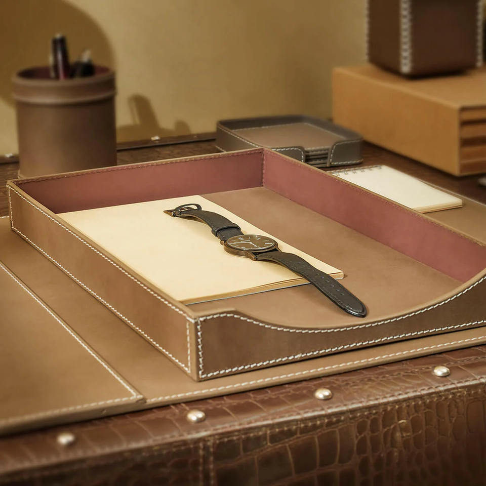 Vintage Crafts Classic Eco-Friendly Custom Leather Tray Multi-function Desktop Organizer Office Kit Holder Storage Box