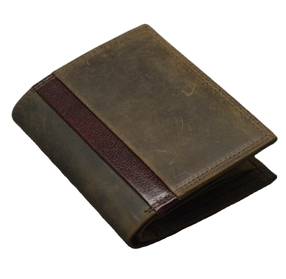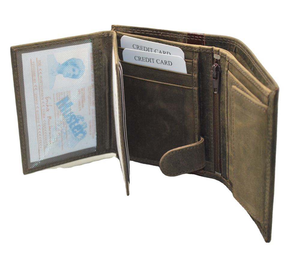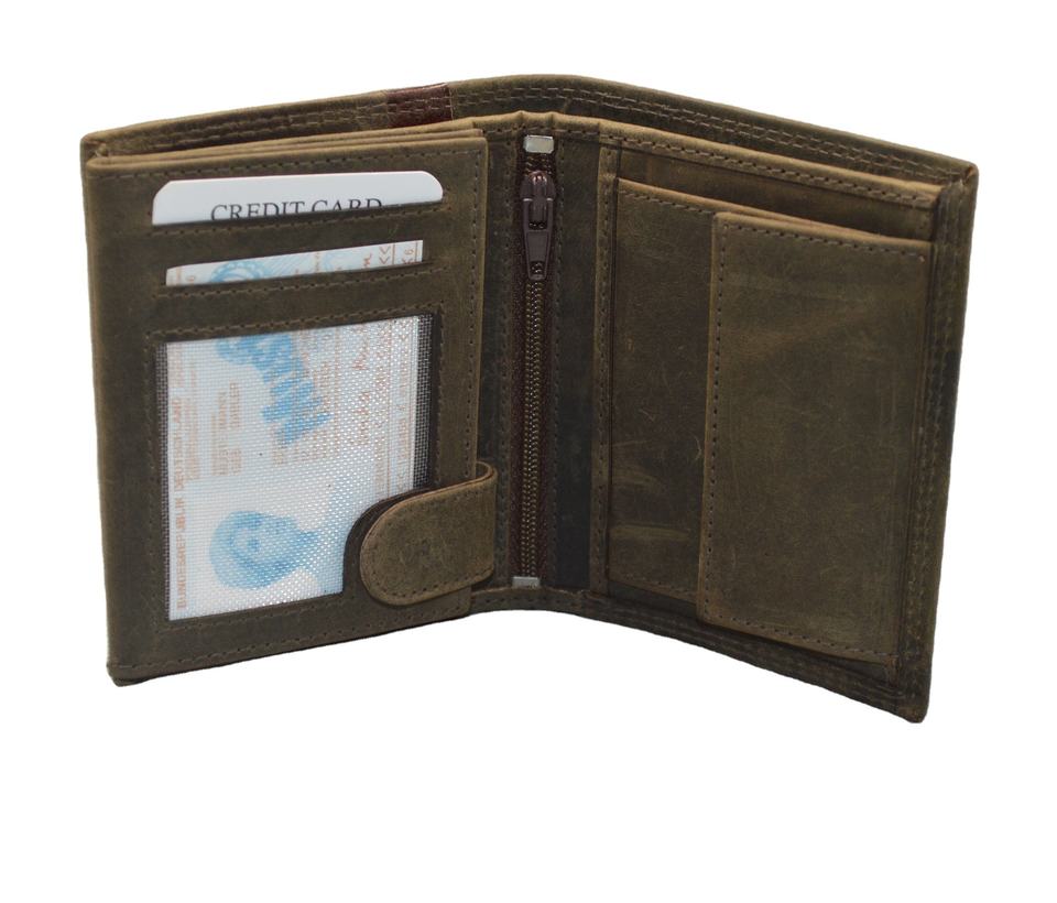 Vintage Crazy Horse Genuine Leather Bifold Flip ID Wallet for Men Slim Vertical Card Slots Coin Zip Compartment Open RFID