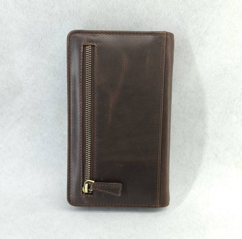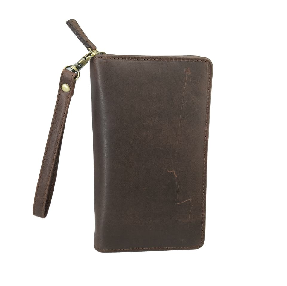 Vintage Crazy Horse Leather Passport Holder Card Sleeves Organizer Purse Men's Wallets Rivet Chain RFID Blocking Clutches Girls