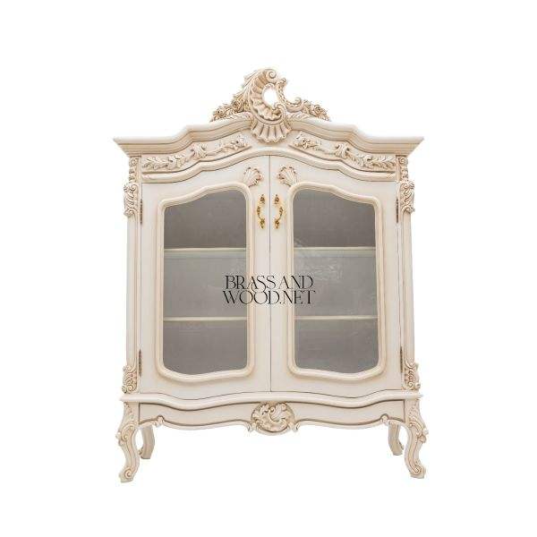 Vintage Cream Carved Display Vitrine Cabinet