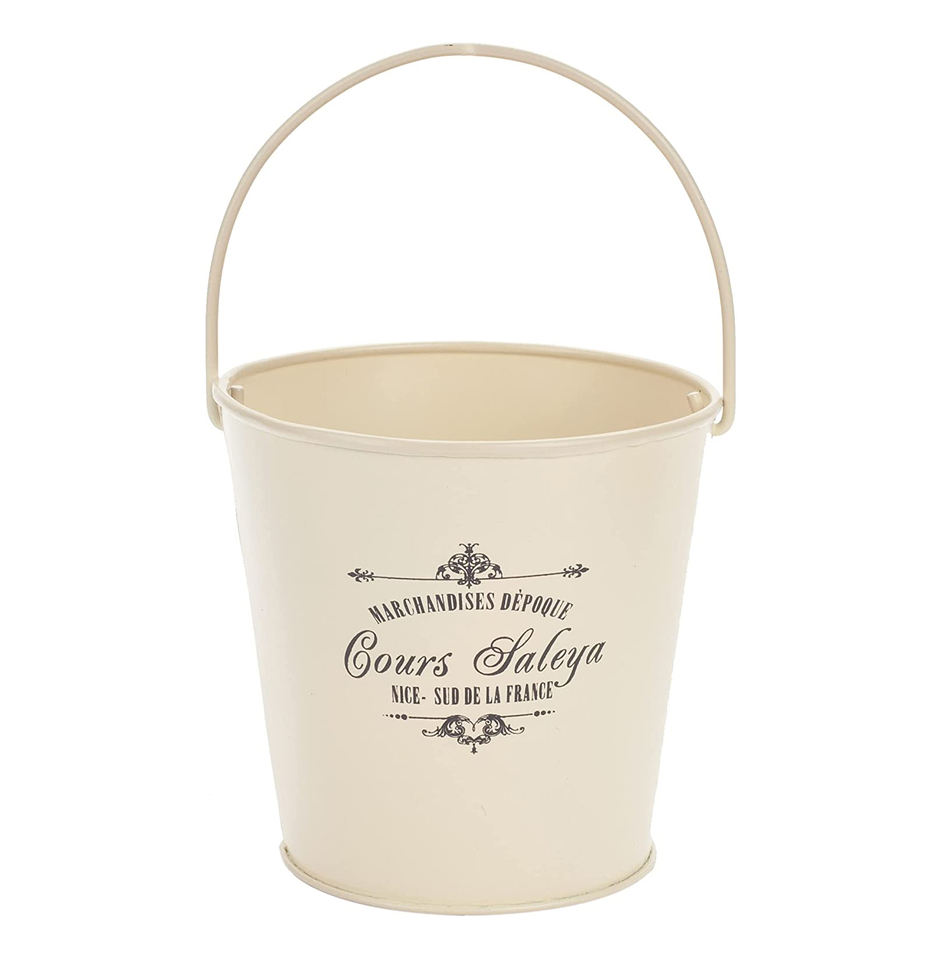 Vintage Cream Metal Galvanized Pail Bucket With Handle for Home and Garden Decor Flower Planter Multipurpose Bucket
