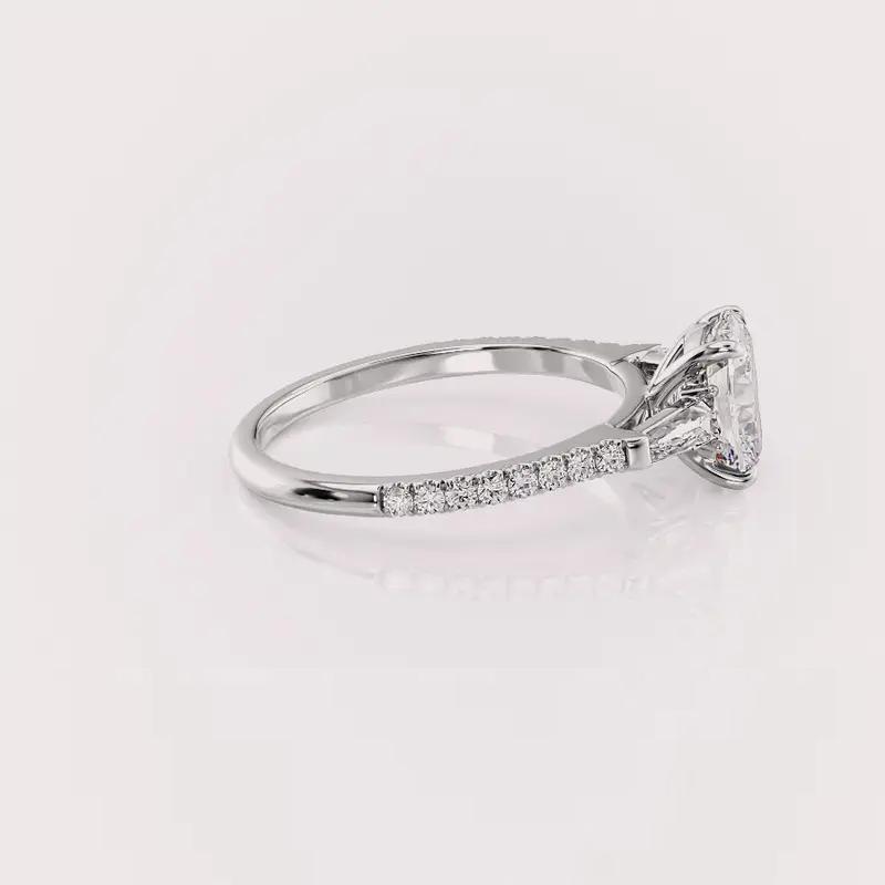 Vintage Cushion Cut Lab Grown Diamond Engagement Ring with Side Stones Rhodium Plated IGI Certified in Solid 925 Sterling Silver