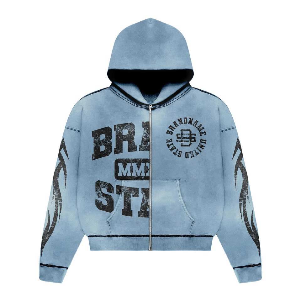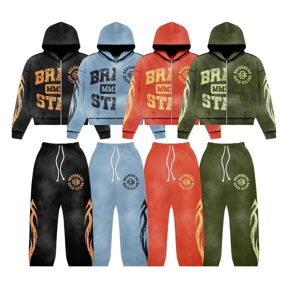 Vintage Custom Acid Washed Zip Up Hoodie & Causal Custom Baggy Jogger Streetwear Drawstring Waistband Sweat Suits