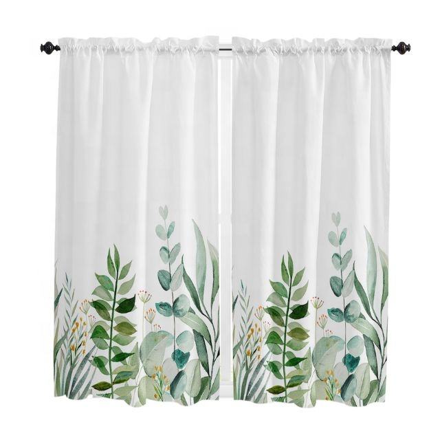 Vintage Cute Green Maple Leaf Print 100% Cotton Blackout Short Door Window Living Bedroom Decorative Customizable Curtain