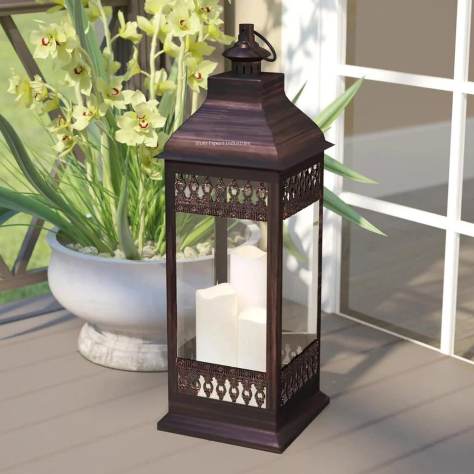 Vintage Decorative Metal and Glass Candle Lantern Black Finished for Home Outdoor Garden Decorative Floor Lanterns