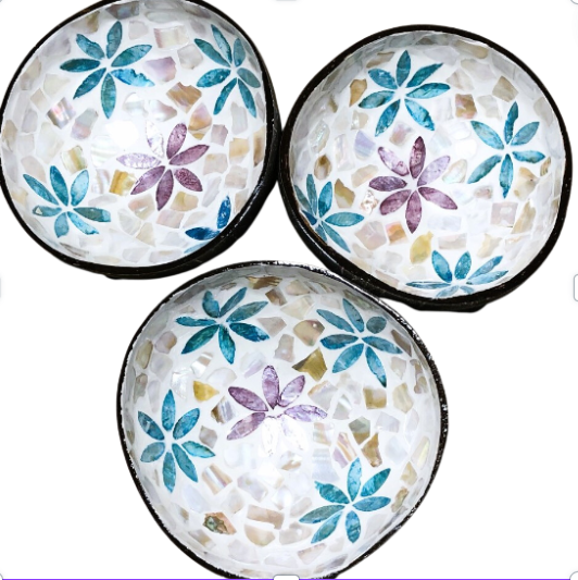 Vintage Design Cheap Wholesale Organic Eco-Friendly Vegan Natural Creative Coconut Bowl With Pearl Inlay Made From Vietnam