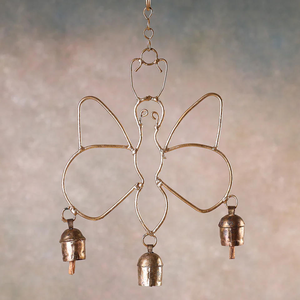 Vintage Design Copper-Coated 4 Bell Diya Chimes Metal Christmas Hanging Bell Wall Hangings for Door & Window Decor
