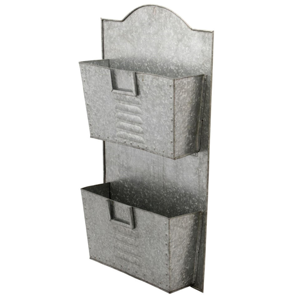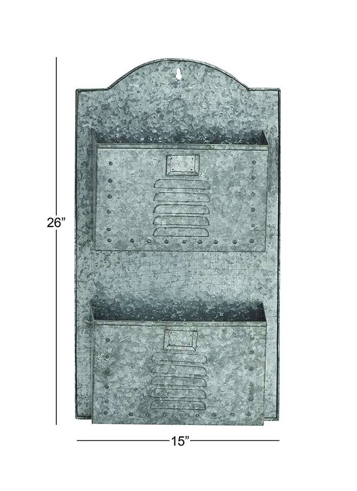 Vintage Design Galvanized Metal 2 Tier Wall Pocket in Handmade Style Perfect for Farmhouse Tin Storage and Stylish Home Decor