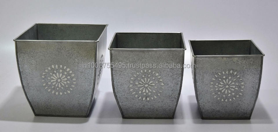 Vintage Design Galvanized Tin Floor Boughpot Garden Planter Pot Hand Painted Flowers Indoor Outdoor Decorative Planters