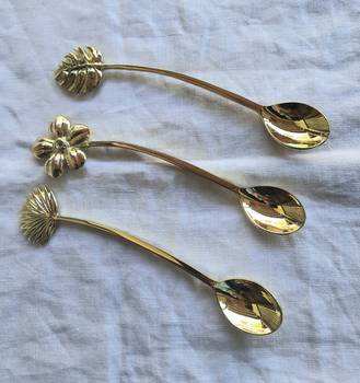 Vintage Design Gold Plated Stainless Steel Spoon Set of 3 Leaf Shape Handles Perfect for Wedding Kitchen Use Direct from India