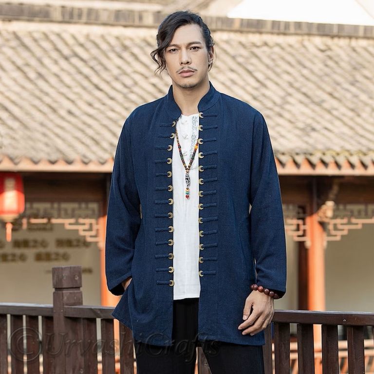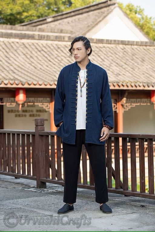 Vintage Design Latest Trendy Cotton and Linen Fabric Japanese Style Shirt Casual Loose Long Sleeve Shirts for Men's at Bulk Rate