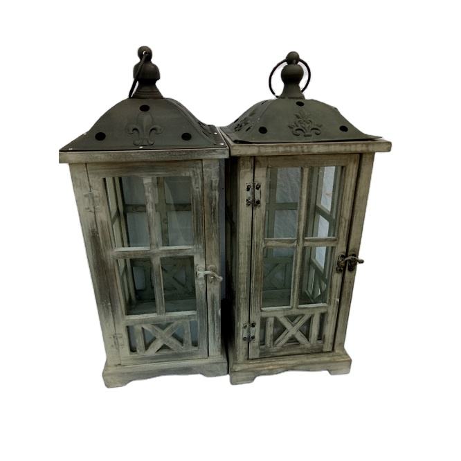 Vintage Design Mango Wood Glass Lantern Customized Shape Home Decoration Garden Hanging Lantern Set of 2 for Wholesales