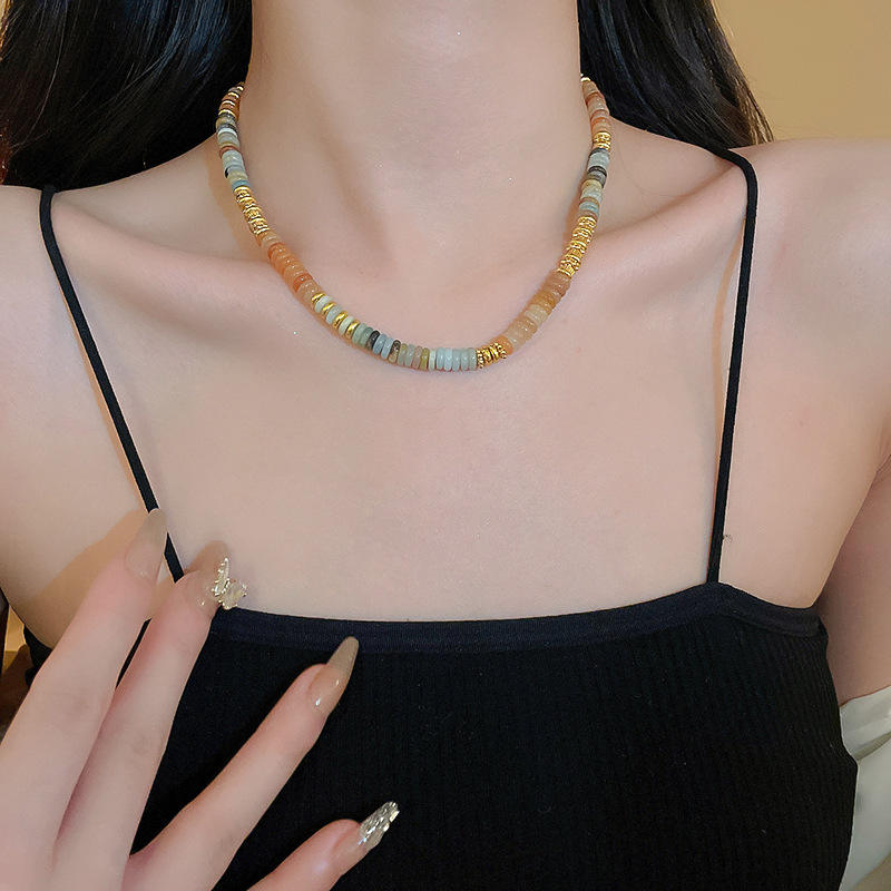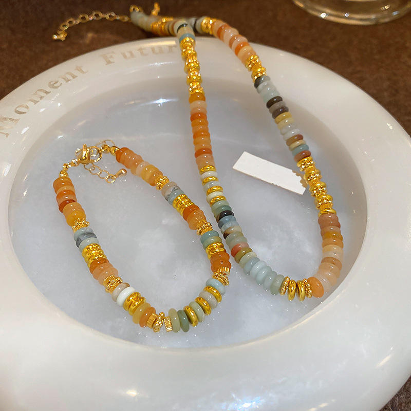 Vintage Design Women Luxury Jewelry Clavicle Chain Gold Plated Colorful Beaded Necklace Bracelet Set