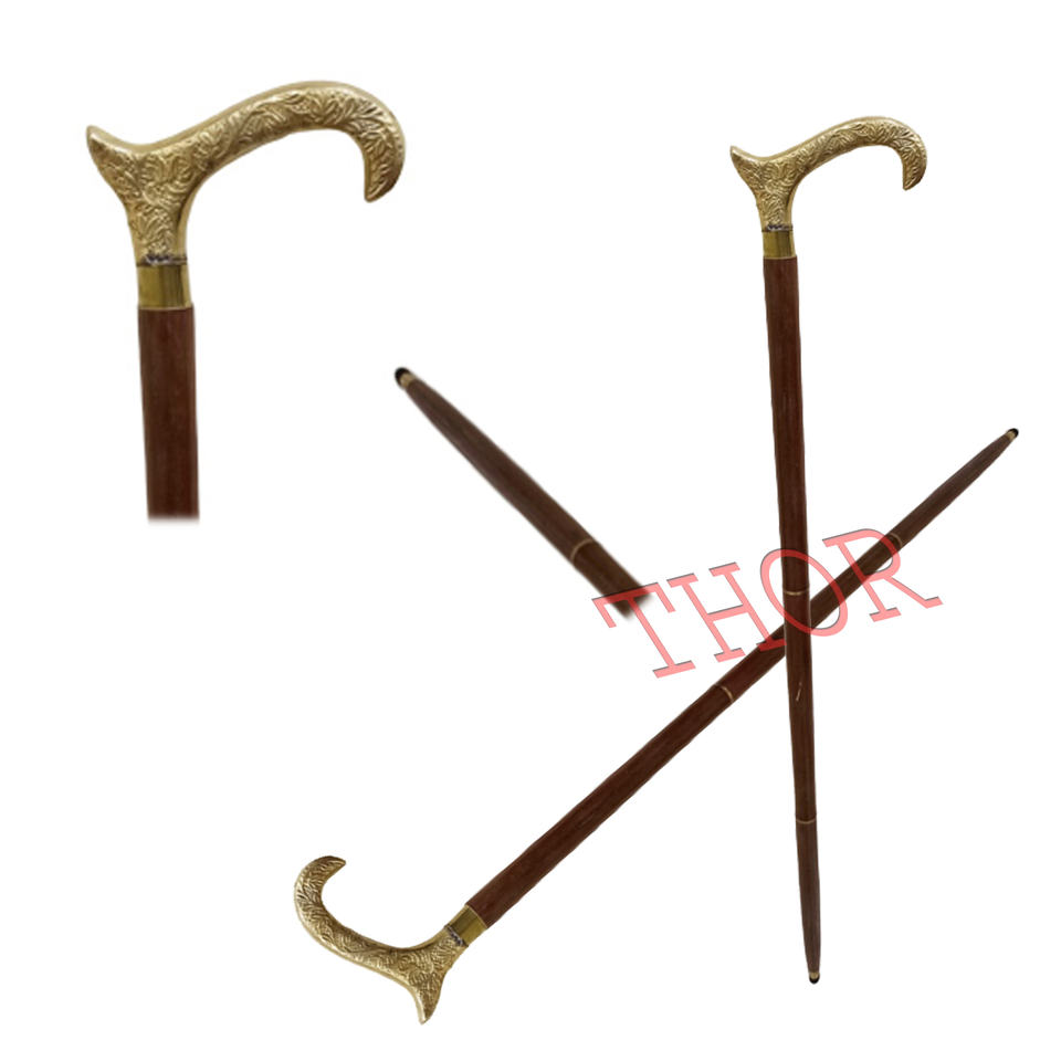 Vintage Designer Brass Handle Solid Wooden Walking Stick Style for Health Care Brown Wood Woman Walking Sticks