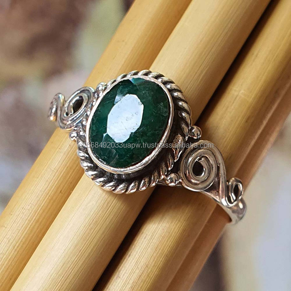 Product name:Boho Designer Emerald Corundum 925 Sterling Silver Ring for Men Women