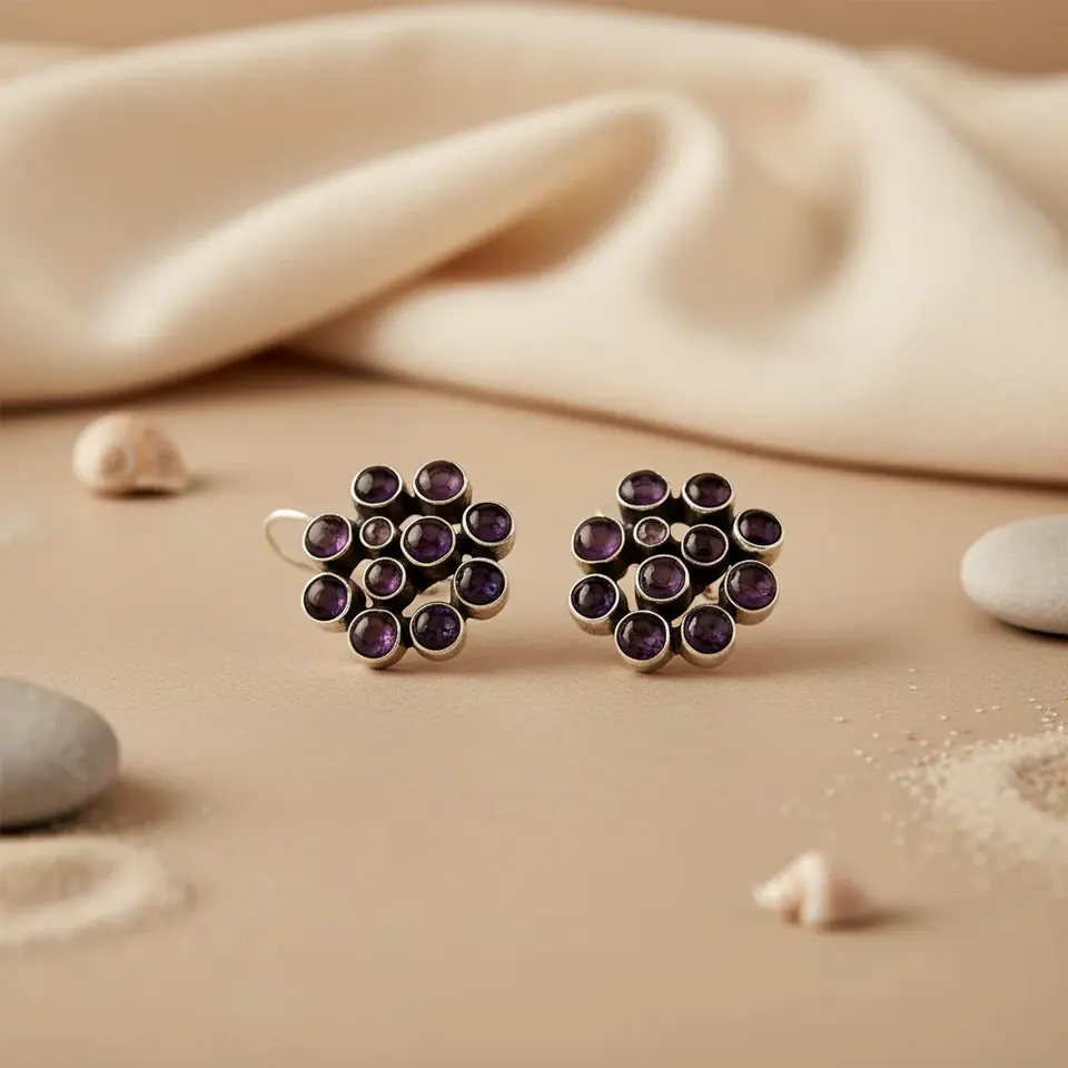 "Vintage Diamond Hoop Earrings for Women in 14k Gold & 18k Gold Plating 925 Silver Amethyst Gemstone Jewelry"