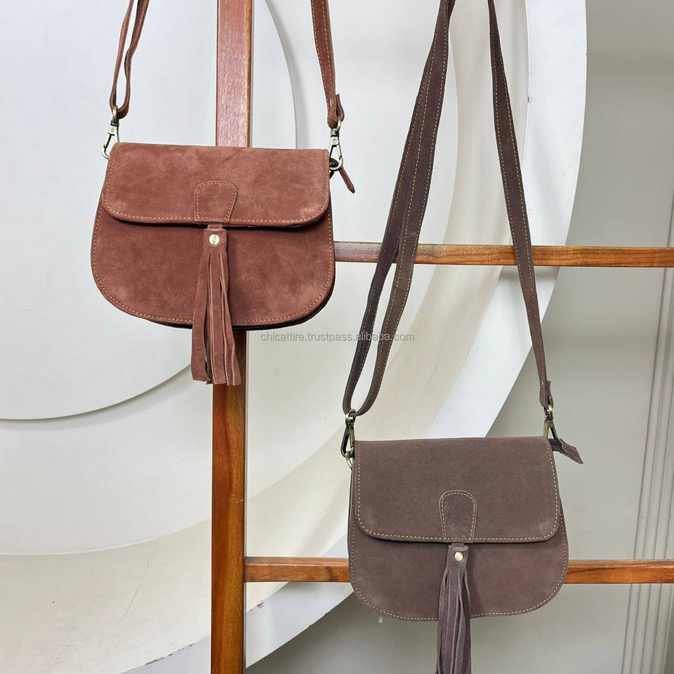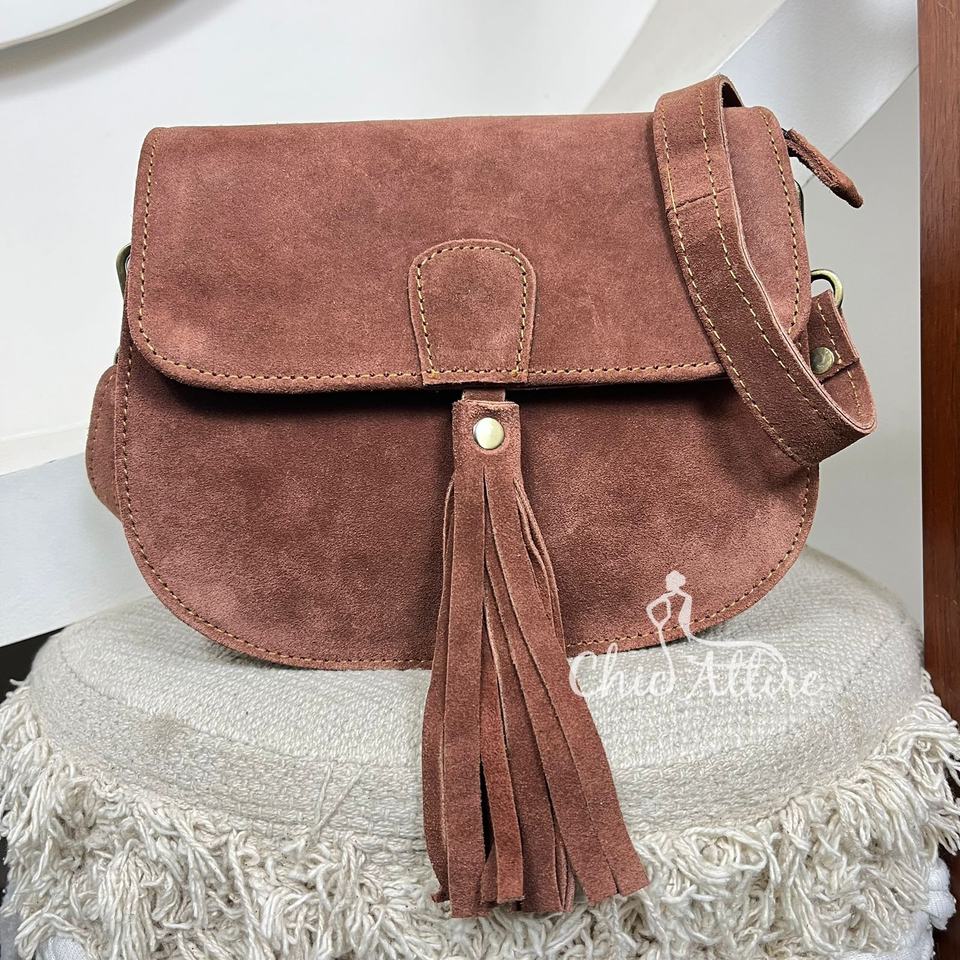 Vintage Durable Designer Genuine Brown Suede Leather Crossbody Bag Women's Boho Style Tassel Crossbody Shoulder Purse Handbag