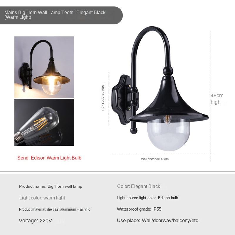 Vintage E27 Garden Outdoor Lighting Bronze LED Wall Lantern Lamp with Aluminum Base PC Material Body Waterproof