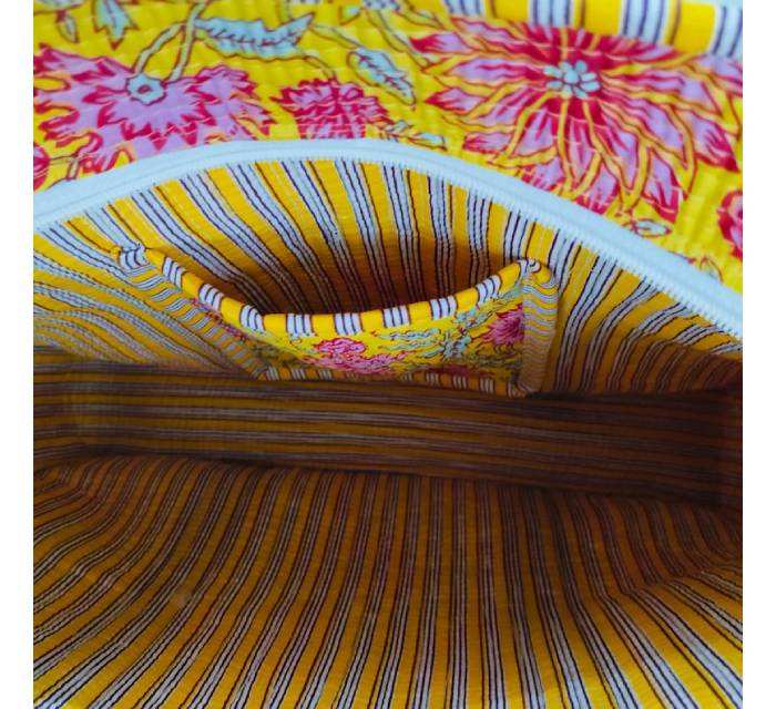 Vintage Eco-Friendly Large Block Printed Waterproof Quilted Cosmetic Bags Cases Beautiful Color Pockets Zipper Portable Travel