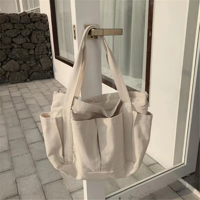 Vintage Eco Organic Canvas Tote Bag Simple Multi-Color Oversized Handmade Vietnam Zipper Closure Customized Printing