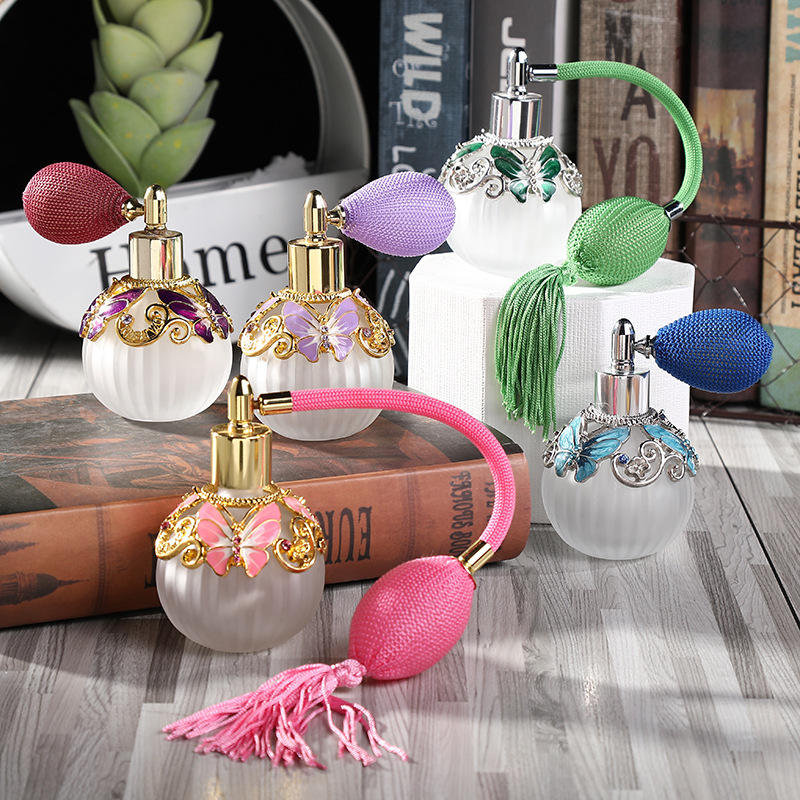 Vintage Elegant gem Embellishment Perfume Sub Bottled Air bag Spray Butterfly Essential Oil Perfume Bottle Wholesale