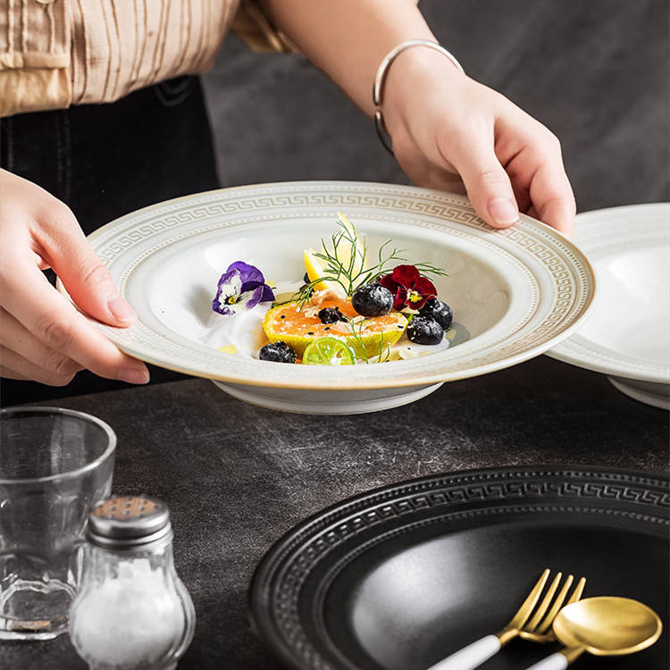 Vintage Embossed Stoneware Dinnerware Sets Black White Crockery Relief Cups Dishes Plates and Bowls Set Ceramic Tableware Sets