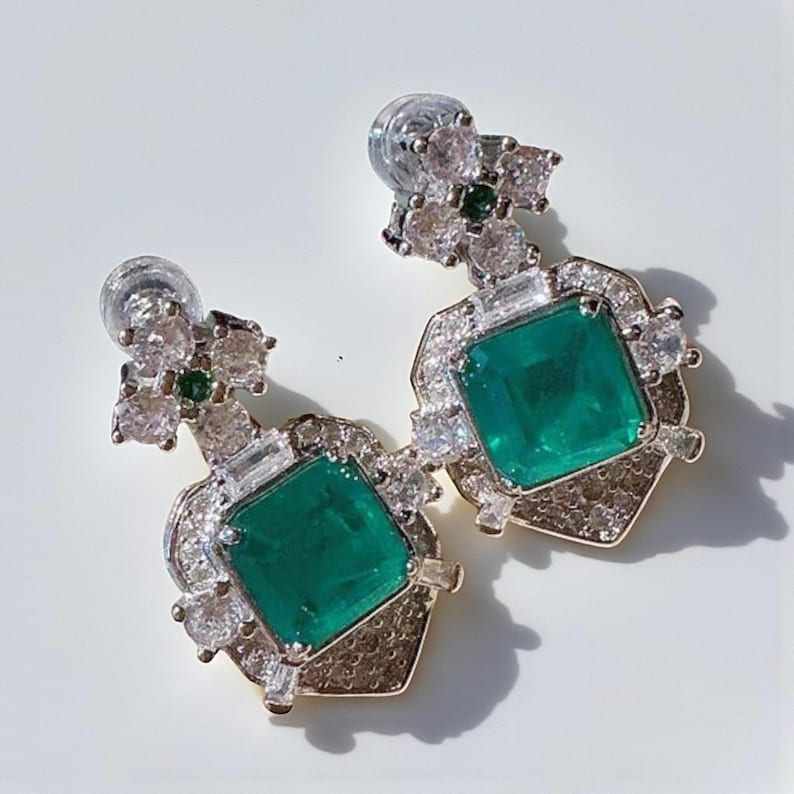 Vintage Emerald Earrings Princess Cut Drop Earrings Elegant Green Gemstone Dangle Jewelry Gift For Her Fine Jewelry