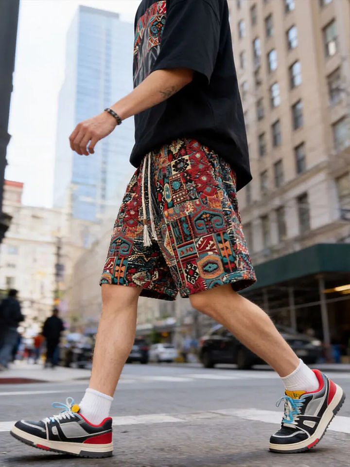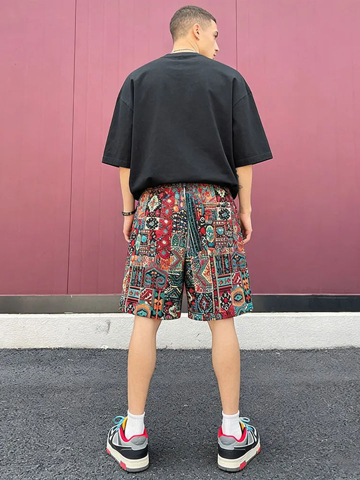 Vintage Ethnic Casual Shorts Men Streetwear Fashion Beach Shorts Gym Summer Athletic Print Cropped Pants