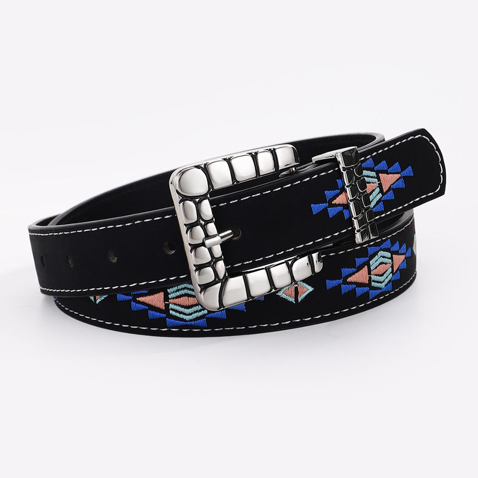 Vintage Ethnic Designer Wide PU Women's Belt Simple Embroidered Western Style Fashionable Alloy Buckle Genuine Leather Pakistan
