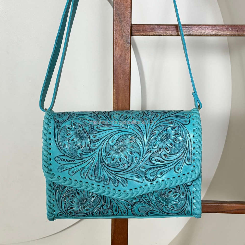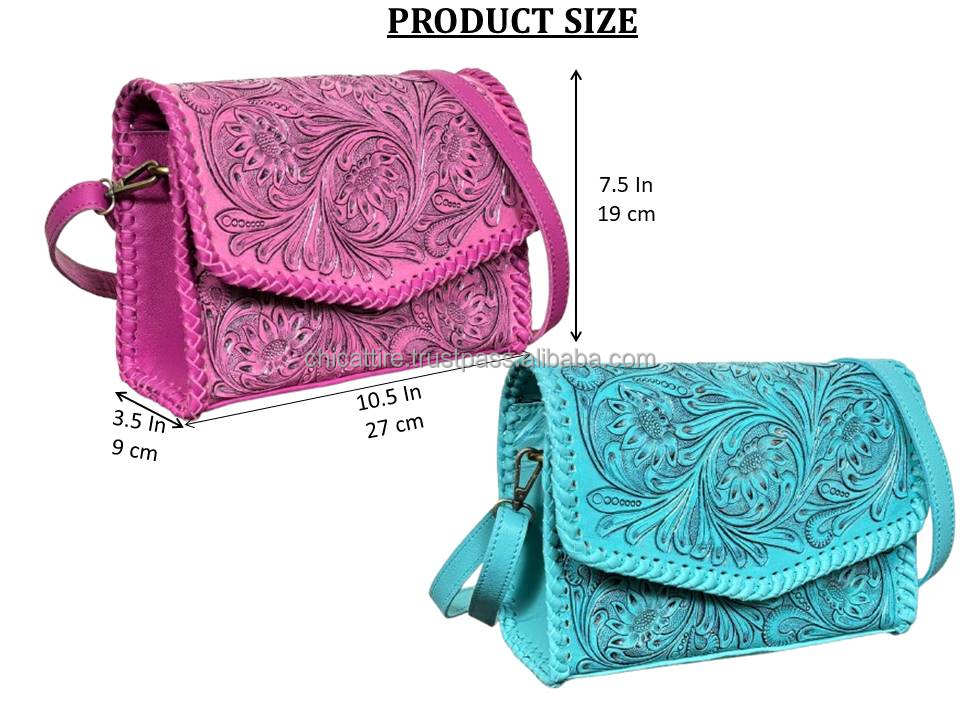 Product name:Hand Tooled Cowhide Leather Crossbody Bag