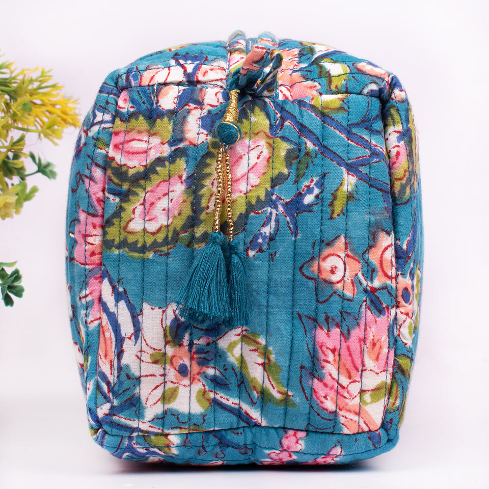 Vintage Fashion Indian Quilted Cotton Eco-Friendly Zippered Portable Hand Block Printed Makeup Bag Three Piece Set Pouch Spring