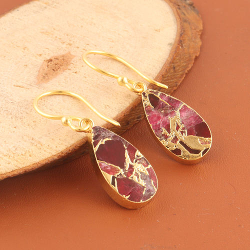 Vintage Fashion Pear Shape Mohave Ruby Copper Turquoise Teardrop Earring Gold Plated Drop Dangle Hook Earring Woman Jewelry Gift