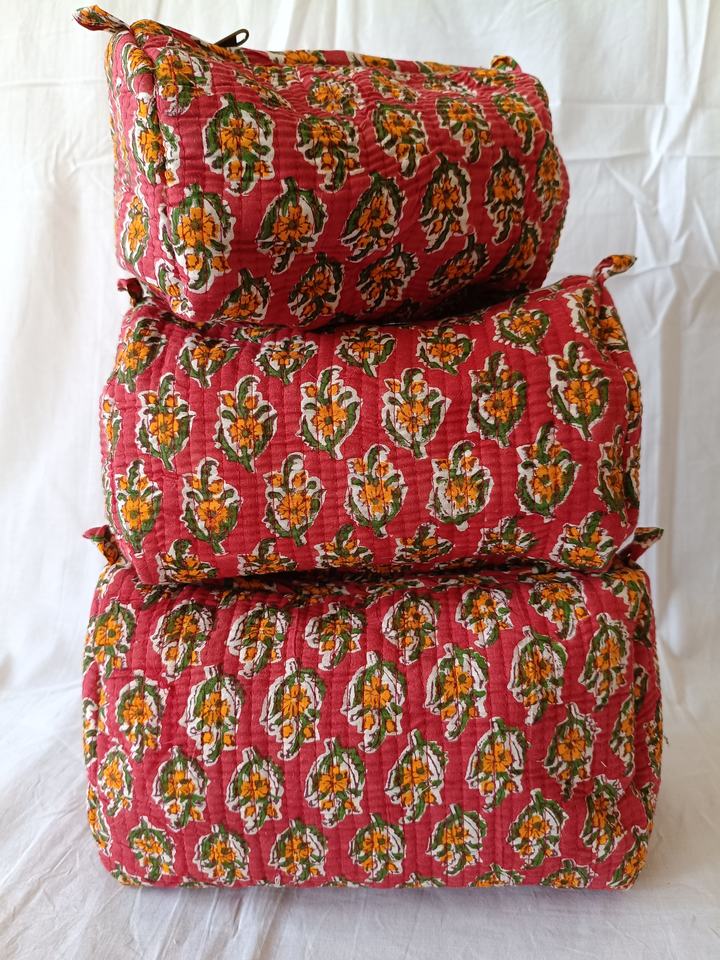 Vintage Fashion Striped Quilted Cotton Cosmetic Bags Hand Block Printed Eco-Friendly Durable Zipper Closure High Quality Large