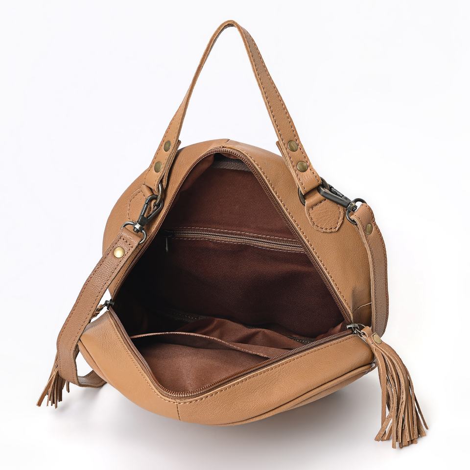 Name:Betsie Flow Tooled Leather Round Bag