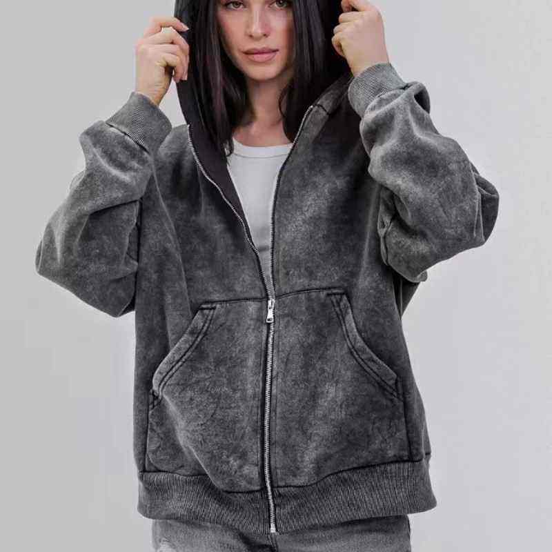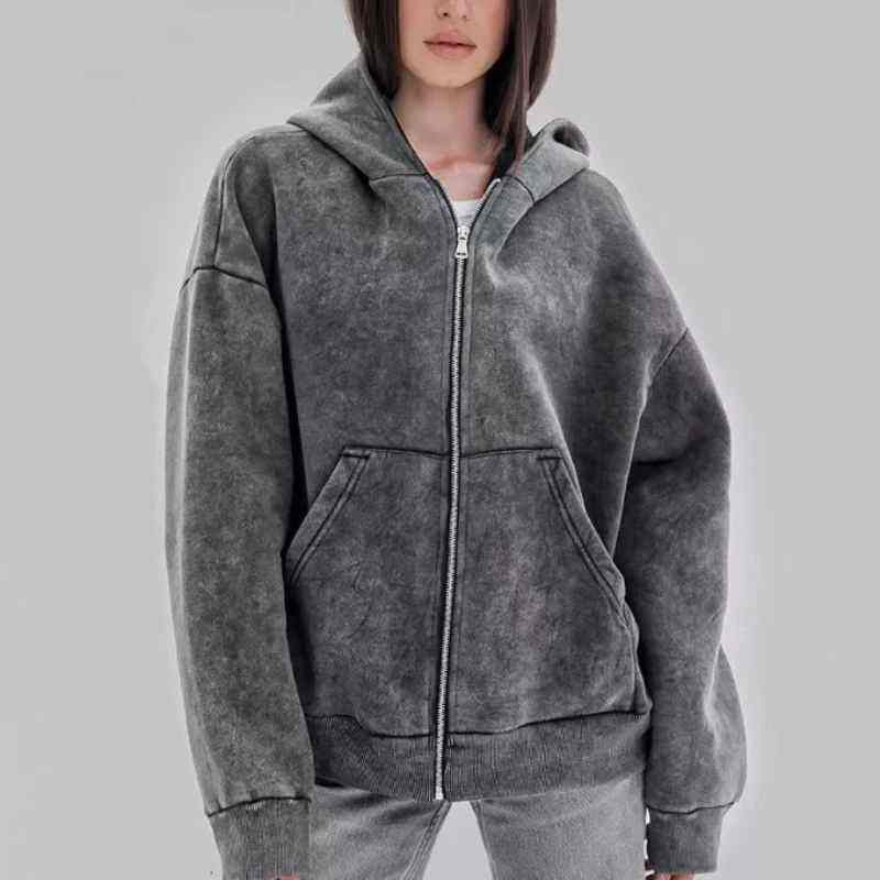 Vintage Fleece Oversized Cropped Zip up Hoodie Plus Size Hoodies Sweatshirts Acid Wash Cotton Zip up Hoodie