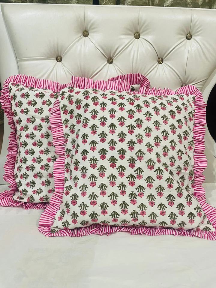 Vintage Floral Cotton Raffle Cushion Covers Bohemian Throw Pillows Handprinted Boho Trim Sofa Bed Pillow Cover Indian Cushion