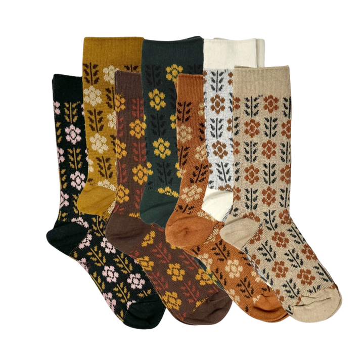 Vintage Floral Knit Crew Socks Soft Cotton Blend Anti-Slip Daily Use with Custom Logo Option