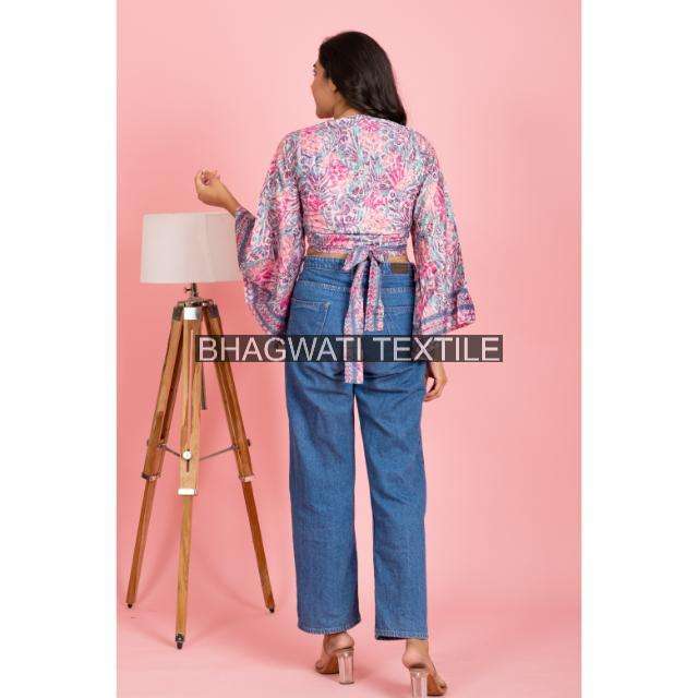 Fashion Element:Vintage, Floral Print, Crop Top, Wrap and Tie